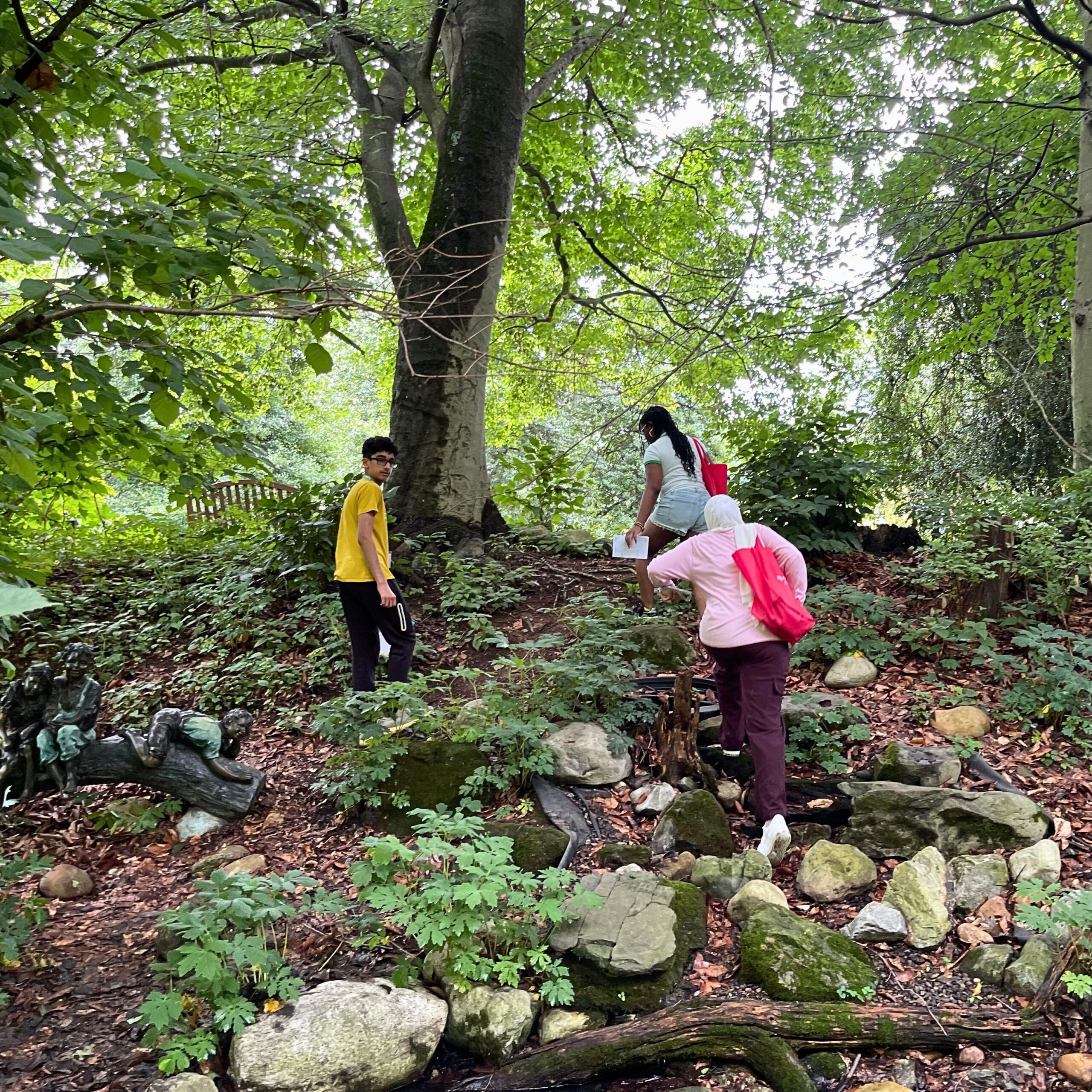 Caption: Dr. Lena Struwe, Director of the Chrysler Herbarium and professor in the Department of Plant Biology (SEBS), encourages the ambassadors to stop and observe the world they see around them, pointing out the beauty and significance of a particular plant.